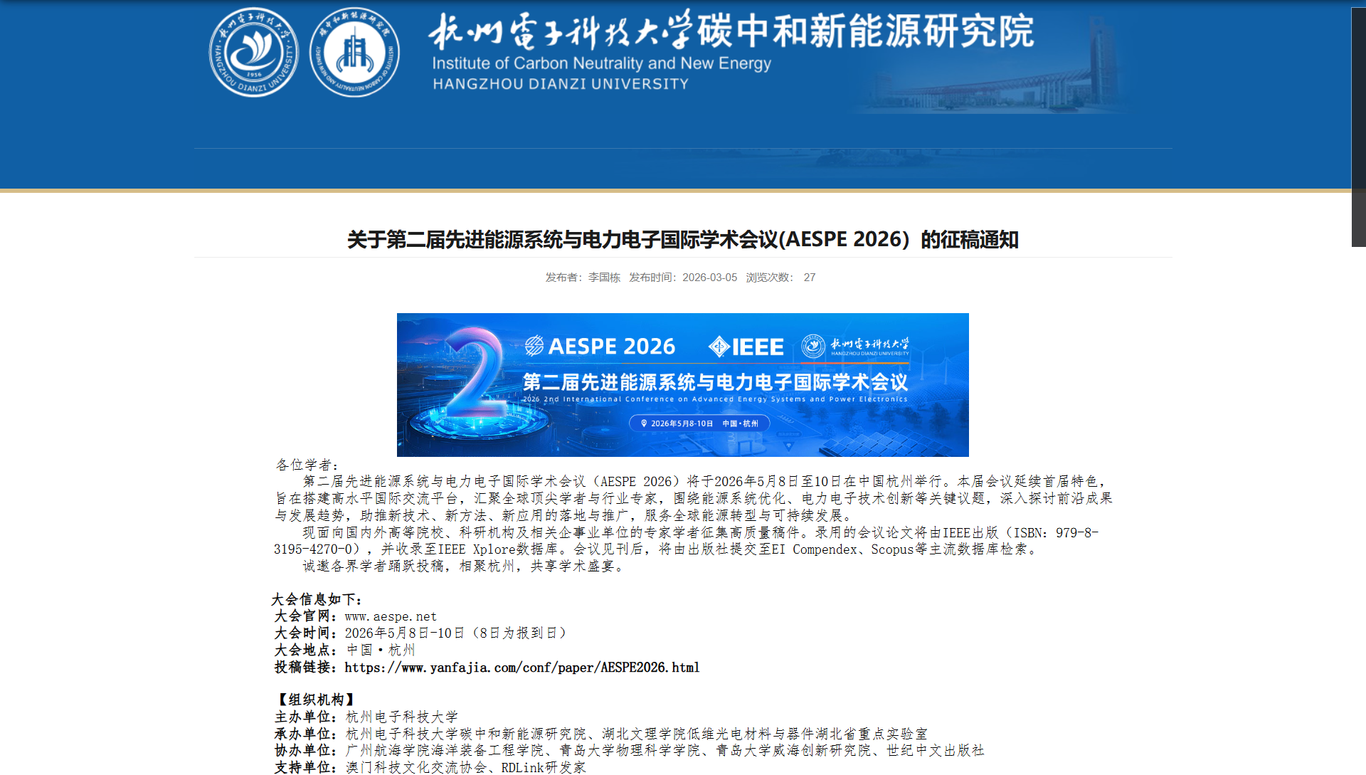 | 会议已上线主办方杭州电子科技大学碳中和新能源研究院官方网站:【点击查看详情】